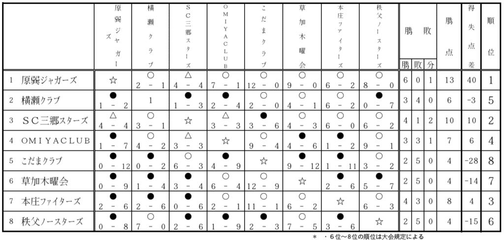 埼玉県で開催されてました第31回埼玉県男子リーグ1部大会の最終結果です。